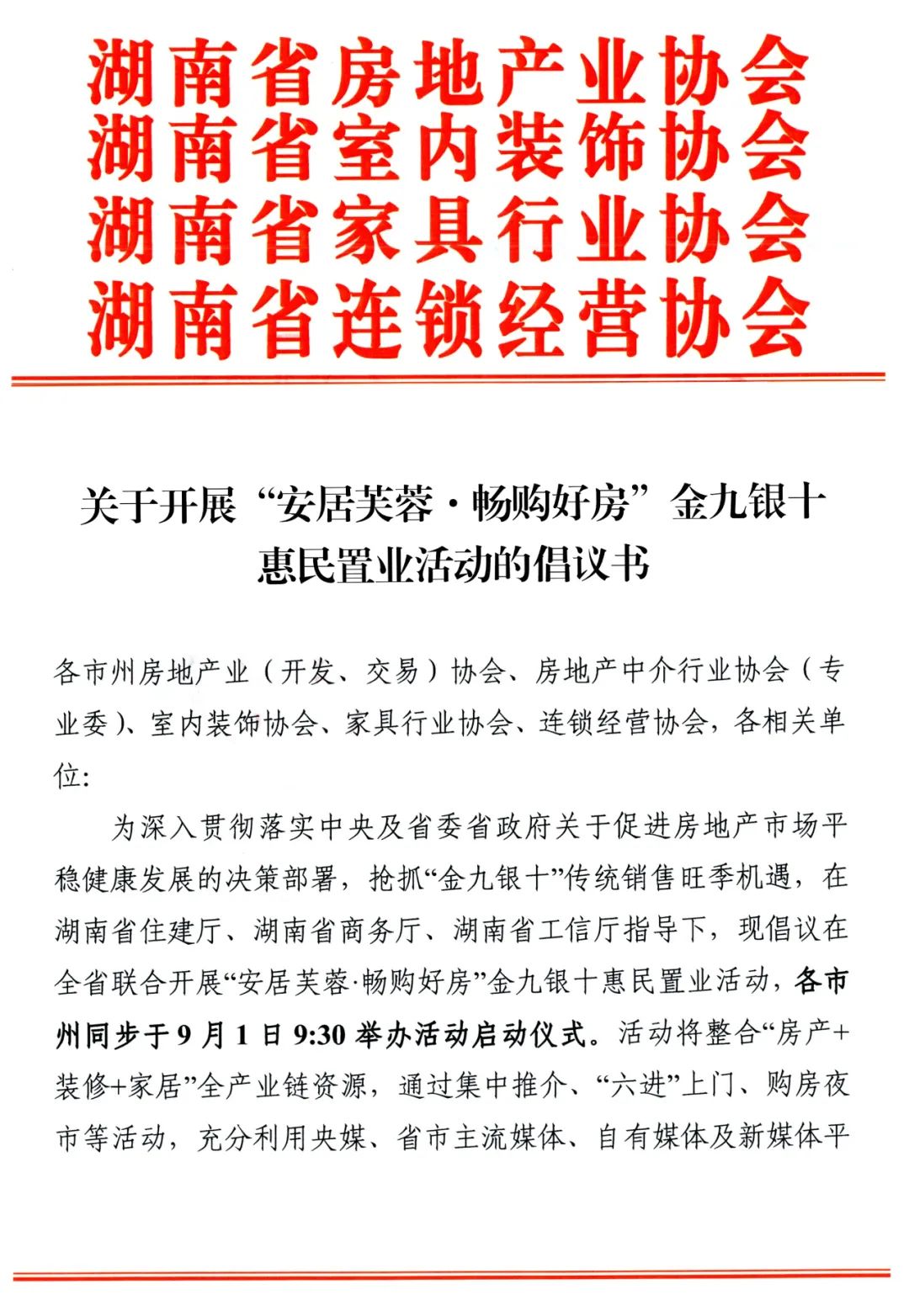 关于开展“安居芙蓉·畅购好房”金九银十惠民置业活动的倡议书