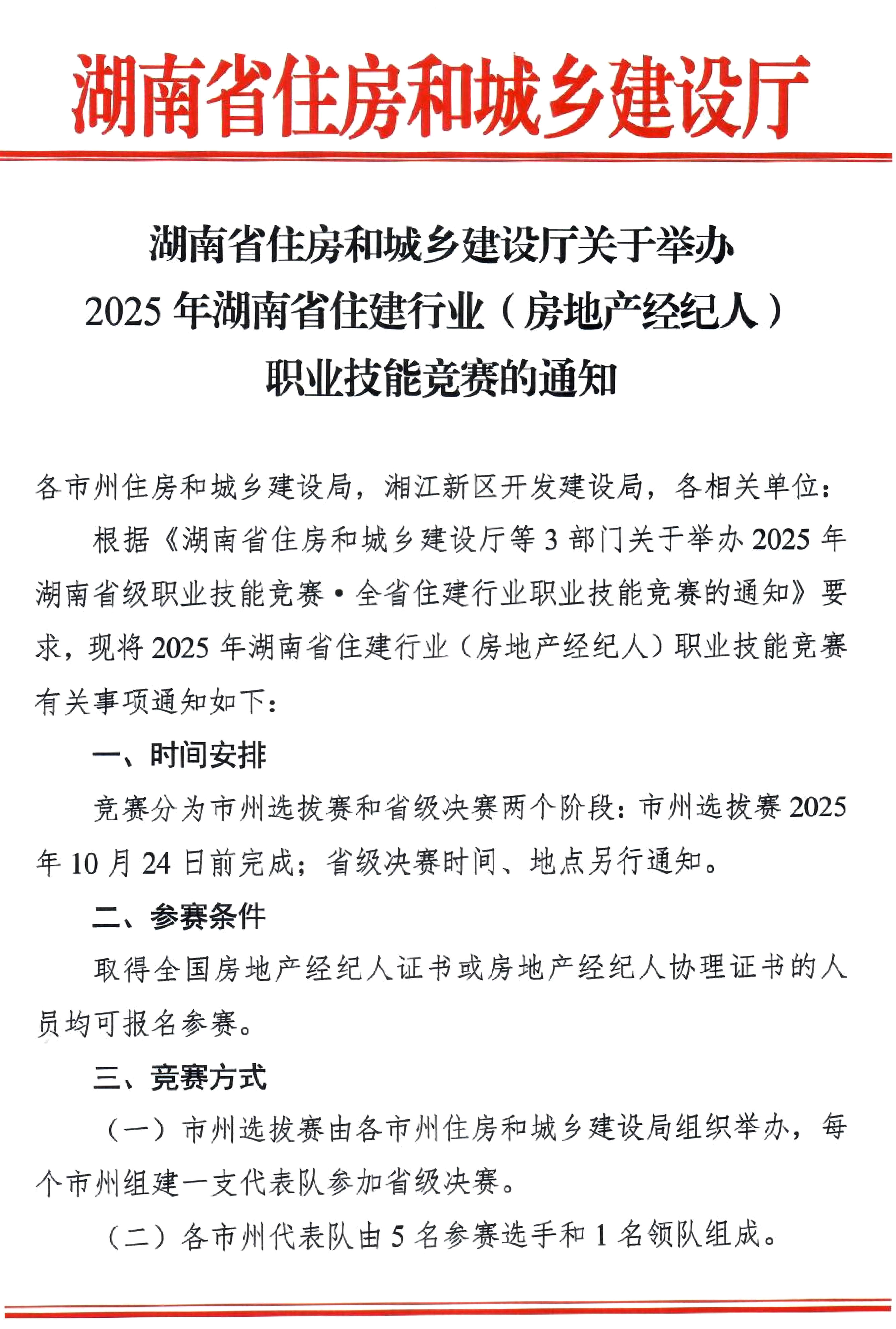 关于举办2025年湖南省住建行业(房地产经纪人)职业技能竞赛的通知